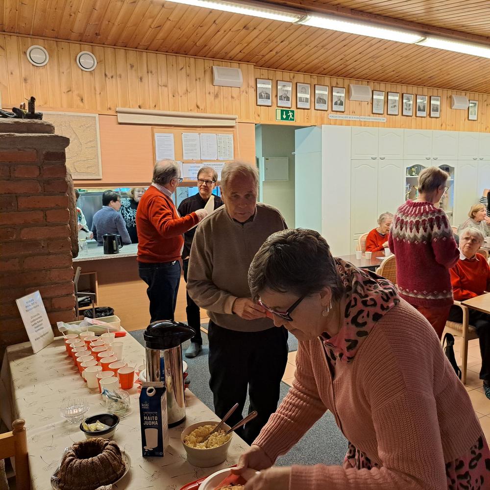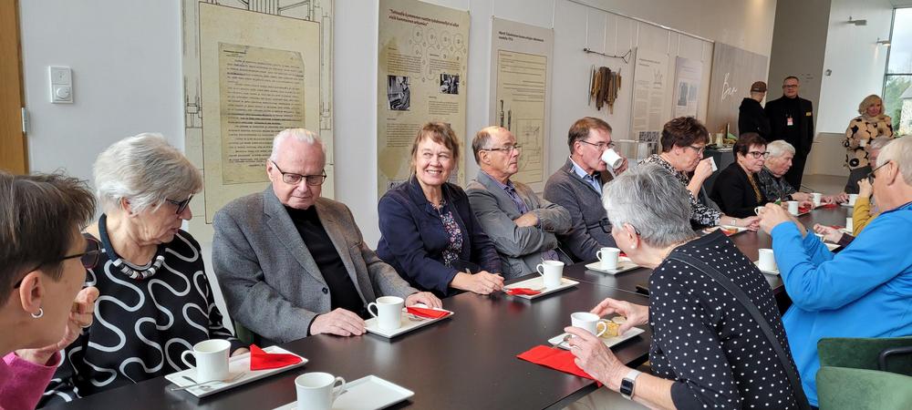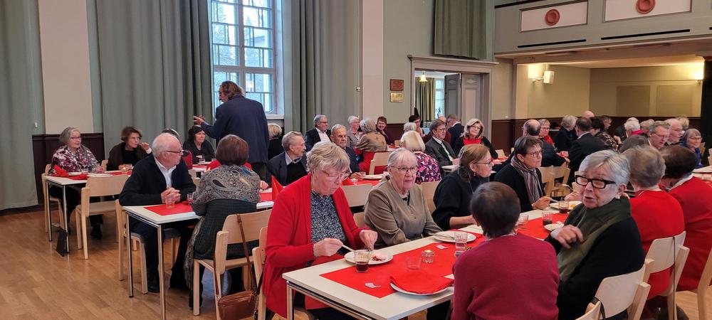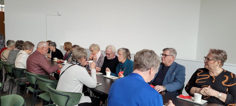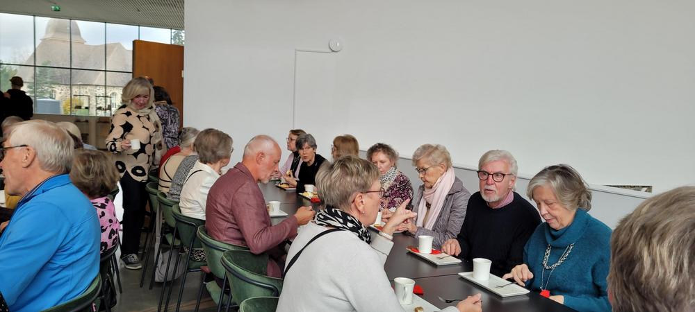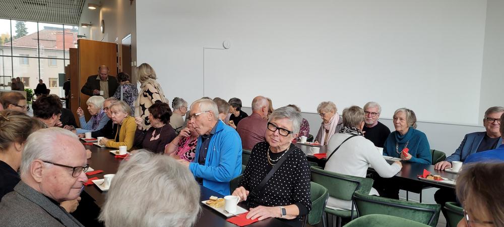 Avaa sydämesi -konsertin senioreita väliajalla kahvittelemassa 17.10.23 (37 osanottajaa):