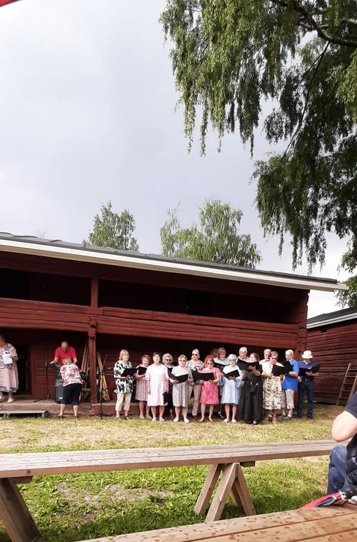 Hinttalan eläkeläisten kesätapahtumassa 28.6.23 oli runsaasti yhdistyksemme jäseniä (27 + kuorolaiset):