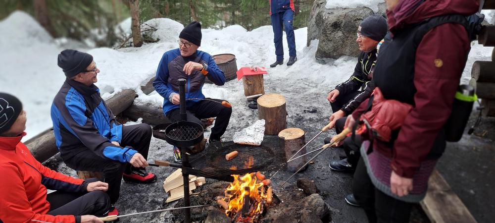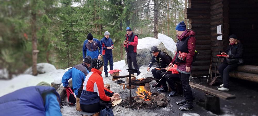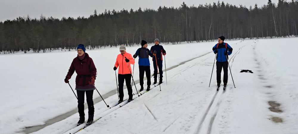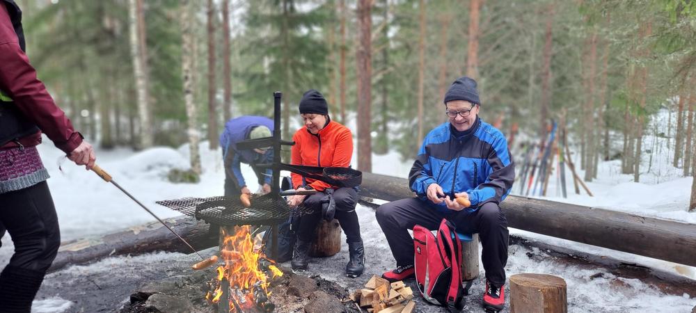 Kuutamohiihto 25.1.24 Koukkujärven metsissä (7 osanottajaa, 3 naista ja 4 miestä):