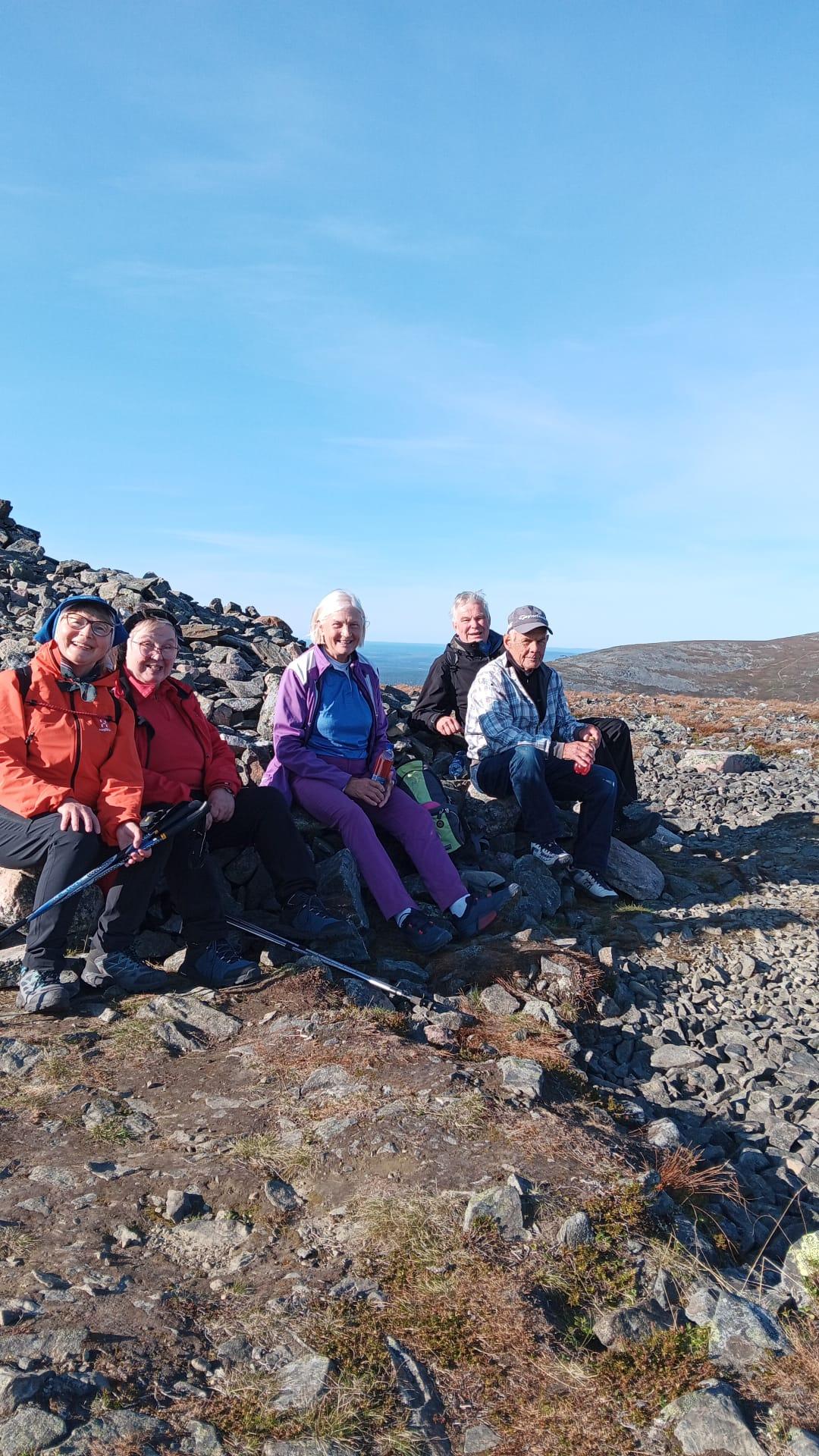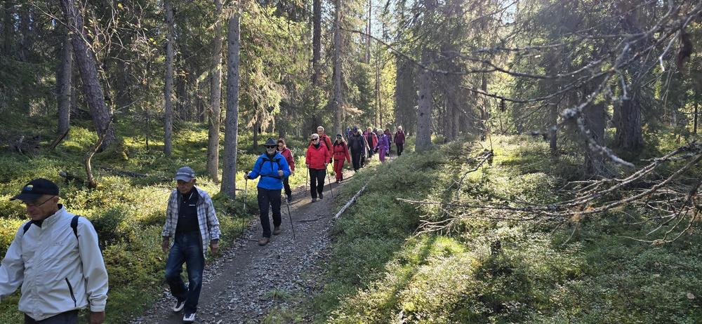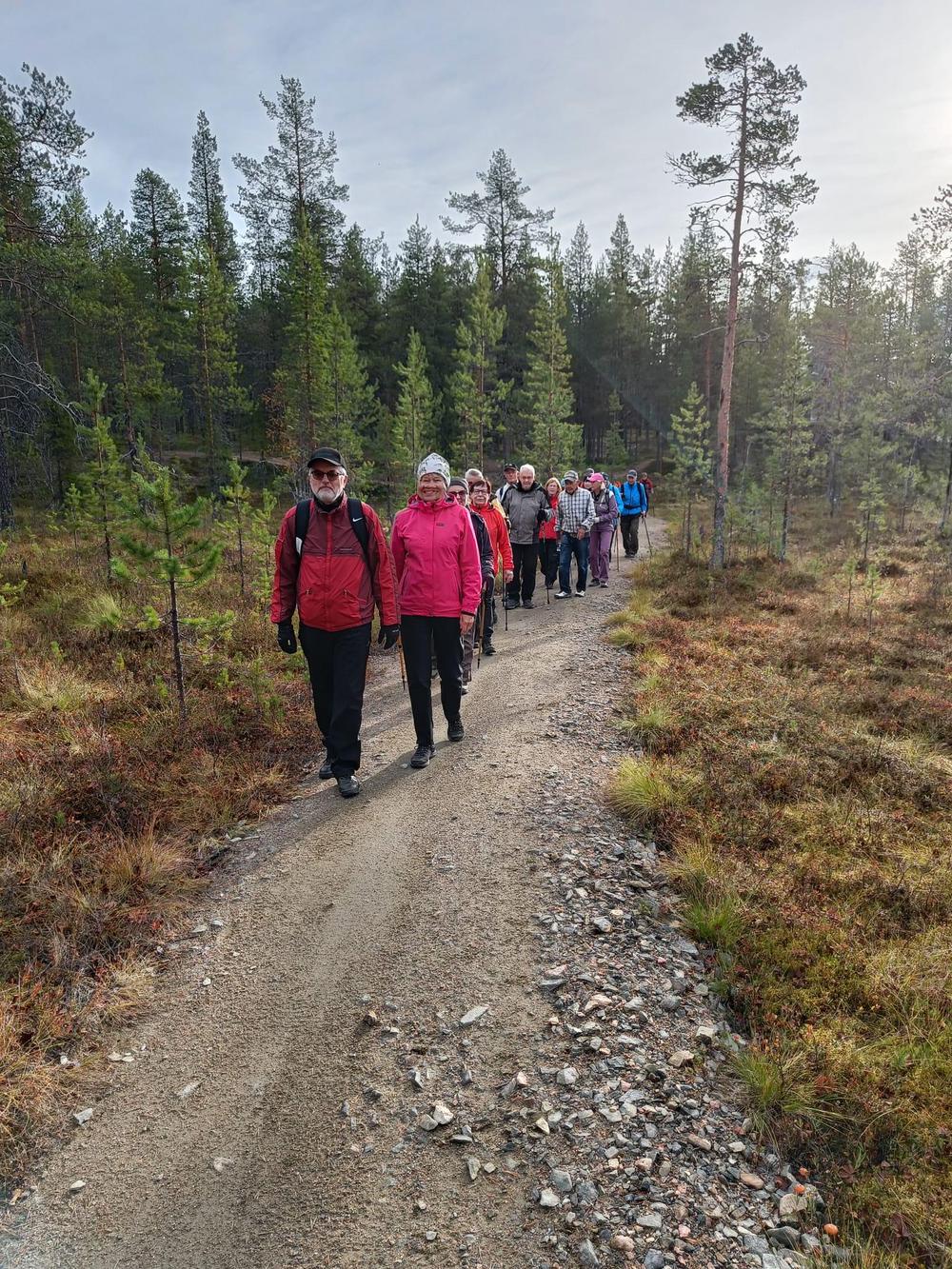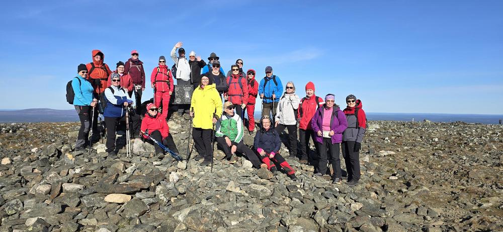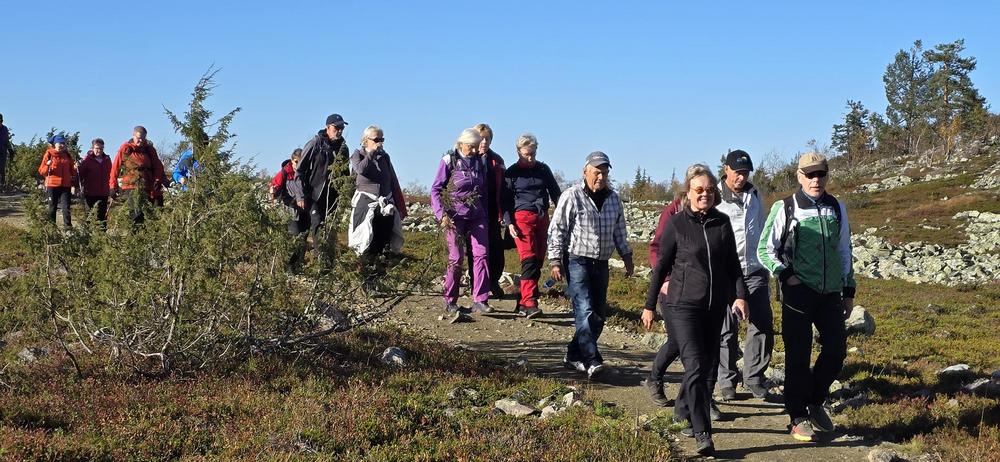 Seniorit matkustivat Ylläkselle ulkoilulomaa viettämään ja nauttimaan Lapin luonnosta. Ilmat suosivat retkeilijöitä auringon paistaessa joka päivä ja lämpötilan huidellessa päivisin jopa yli +20 astetta. – Itikoita ei enää näkynyt, joten kävelyistä sai nauttia niiden häiritsemättä. Ensimmäisenä päivänä lähdettiin Kellokkaan opastuskeskuksesta Kesängin ja Keskinen laen (615 m) kautta Kesängin laavulle ja sieltä takaisin hotellille. 22 henkilöä reippaili 13 km matkan upeassa auringonpaisteessa, toiset 22 henkilöä kiersivät Varkaankurun luontokohteen 3,5 km polun. Illalla paistettiin lättyjä kodalla ja laulettiin yhdessä. Toinen päivä sujui Pallaksella Taivaskeron (809 m) valloituksen merkeissä. Puolet senioreista kiipesi Laukukeron kautta Taivaskerolle taivaltaen 9 km ja toinen, 6 hengen ryhmä, kiipesi Palkaskerolle (705 m) taivaltaen 7 km. Kolmas ryhmä käveli Vatikurua ihailemaan Taivaskeron rinteeseen 4 km matkan. Kolmantena päivänä tutustuttiin Äkässaivon alueeseen 3 km luontoreitillä. Sen jälkeen ajettiin Reidar Särestöniemen museolle Kaukoseen tutustumaan taiteilijan kotitilaan ja ateljeeseen. Neljäntenä päivänä 12 henkeä valloitti 445 m korkean Kuertunturin nousten vaativaa rakkapolkua. Alas tultiin reippaasti kävellen ja samalla meheviä mustikoita poimien. Kuertunturin lenkin pituus oli n. 6 km. Loppuryhmä käveli Äkäslompolon järven tarinapolulla 5 km. Joka ilta osa senioreista laittoi tanssikengät jalkaan ja tanssahteli hotelli Ylläskaltiossa tai Äkäshotellilla hotellien tarjotessa ilmaiset sisäänpääsyt. Senioreiden keski-ikä oli 72 vuotta, pitkien lenkkien ryhmä nousi neljän päivän aikana 1100 m ja käytti 32 km kävelyihin aikaa 12 tuntia. Lyhyempien reittien kävelijät nousivat vajaa 400 m neljän päivän aikana ja he käyttivät 17 km kävelyihin aikaa yhteensä 7 tuntia.