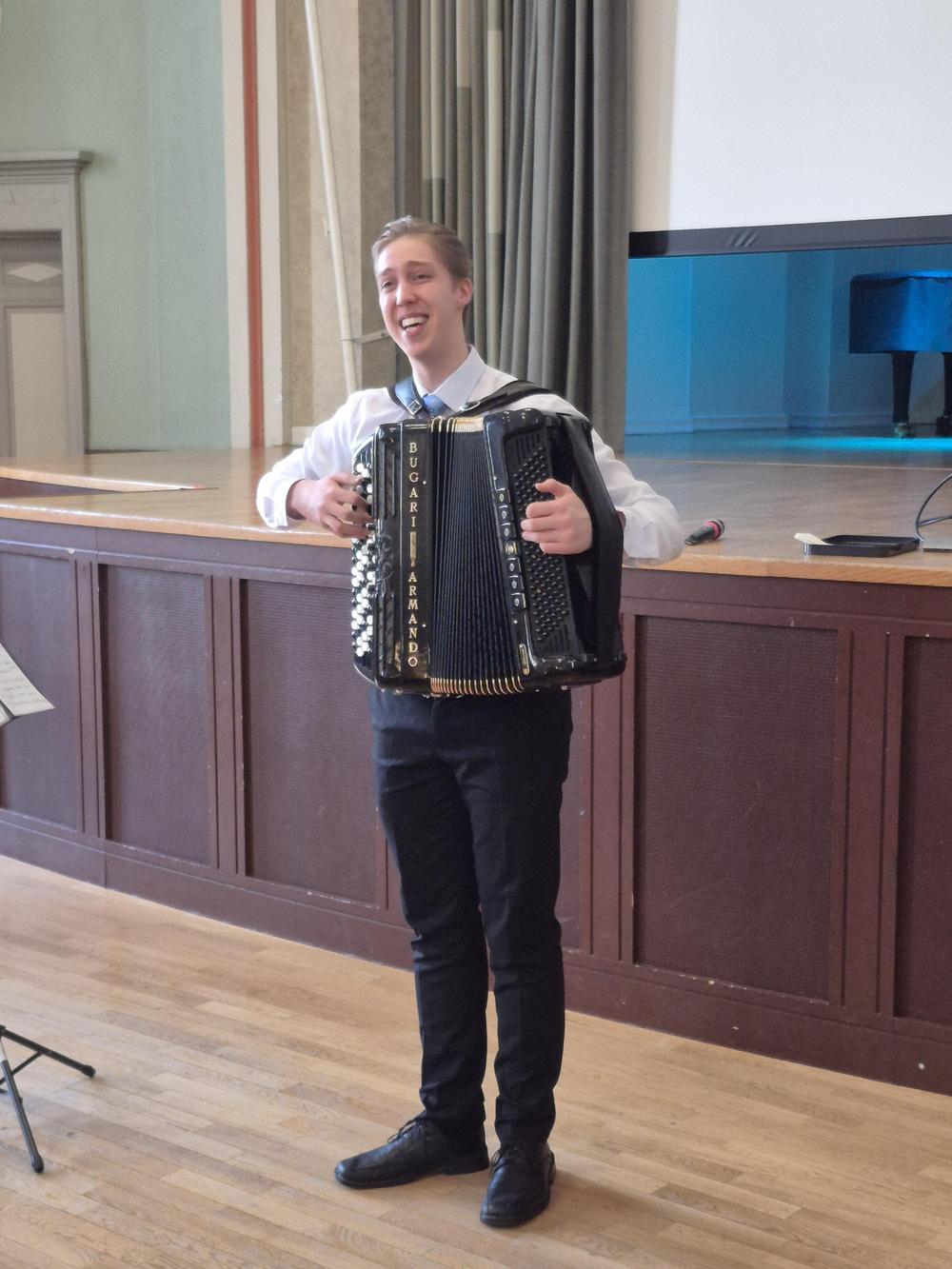 Hanuristi Ville Vehkaoja soitti ja laulatti yleisöä.